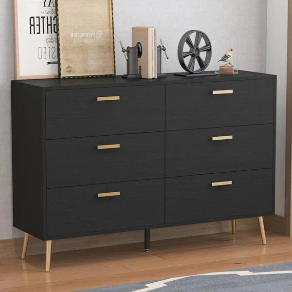 • Its modern design features clean lines, minimalist shapes, and a focus on functionality. The chest boasts six spacious drawers, providing ample storage for clothes, accessories, and more.