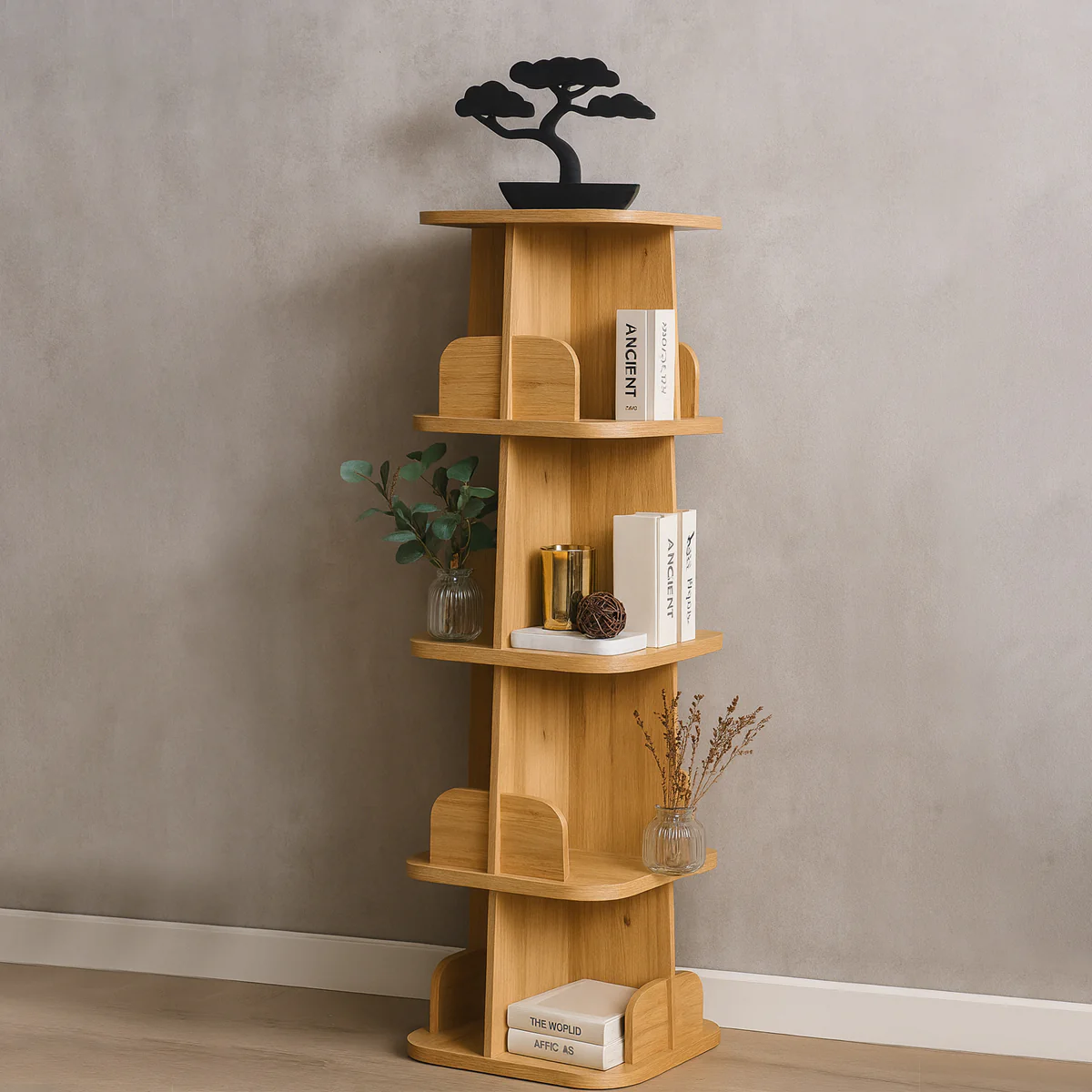 Design The Pivot Wooden Shelf Console features a modern and sleek design with a multi-tiered structure, perfect for displaying decorative items, books, and other essentials. Its compact footprint makes it ideal for small to medium-sized living rooms, and its unique pivot design allows for adjustable storage and display options.